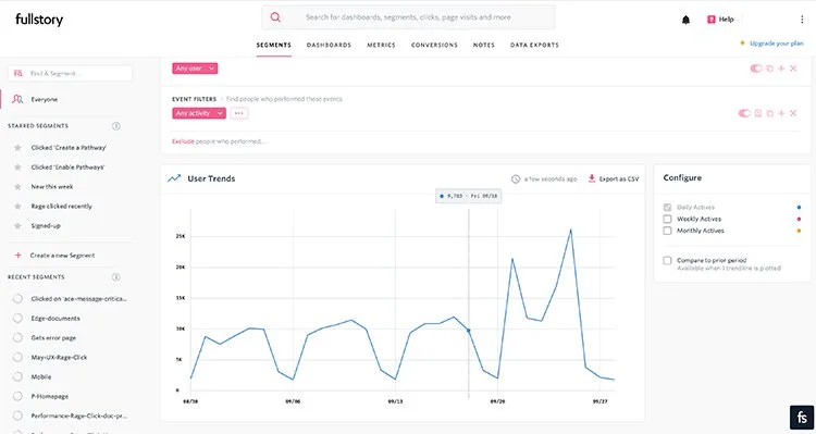 Undertaking best-in-class research helps me understand how other companies or competitors may have solved the same problem, and can influence my process using tested outcomes and due diligence. The main purpose is to collect the best consequences within a specified category and use these ideas to inform my design. For this project, I used Fullstory and Spotify